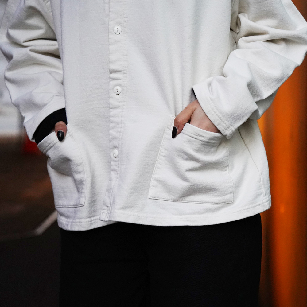 適度にゆとりを持たせたドロップショルダーのデザインはレイヤリングもし易く、