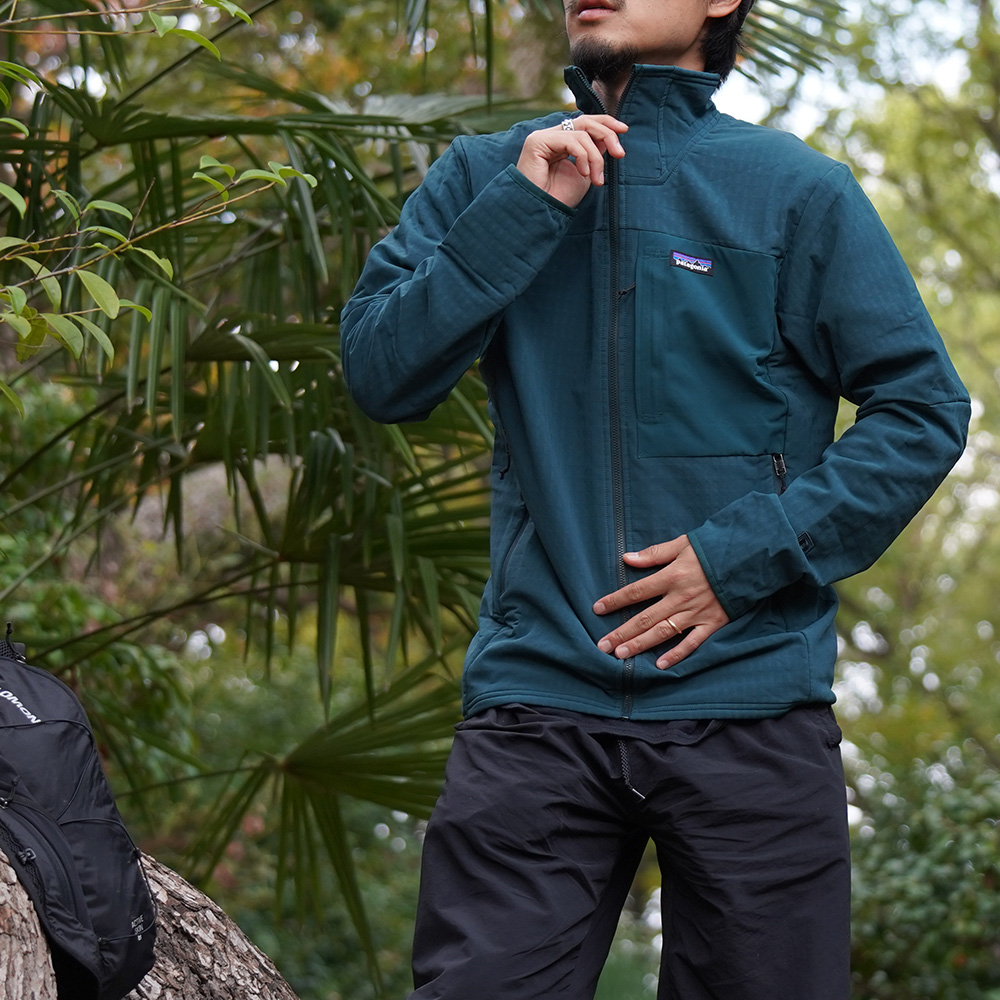 【patagonia / パタゴニア】メンズ・R2 テックフェイス シリーズ 2025/11/14(金) NEW ITEMpatagoniaSORA公式オンラインストアTOPICS パタゴニアが展開するテクニカル・フリースにおいて、保温性に加えてあらゆる環境下でも耐性を維持するR2 テックフェイスシリーズ。フリース素材本来の機能である高い調温性に加え、身体を雨風や擦れからプロテクトする「撥水性」「防風性」「耐摩耗性」を備えた、いわば超万能アイテムであるテックフェイス。今回はそんな最強フリースの魅力に迫りたいと思います。 目次 【patagonia】M’s R2 TechFace Jacket 【patagonia】M’s R2 TechFace Hoodyしなやかな着心地ながら、高密度に織られた表地薄手ながら抜群の保温を実現するグリッド構造の裏地DETAILSSTYLE LOOK最近の投稿 【patagonia】M’s R2 TechFace Jacket price : 28,600.-yen (tax in)col : BLACK , FGE , CASGsize : S-XL item page 前 次 【patagonia】M’s R2 TechFace Hoodyprice : 33,000.-yen (tax in)col : BLACK , FGE , MRLBsize : XS-XL item page しなやかな着心地ながら、高密度に織られた表地 従来のアウトドアフリースは通気性を確保する為に一枚生地のアイテムが多い中でテックフェイスにおいては表と裏で異なるダブル織りの仕様。表地は高密度で織り上げられており、フリース本来の透湿性は最大限に活かしつつ適度な“防風性”と“耐久撥水性”、“耐摩耗性”を発揮。また伸縮性が非常に高くあらゆる動きに対してもストレスフリーな着心地は是非一度袖を通して体感して頂きたい。単体での着用においても高い保温力を維持しつつ、ミドラーとしての着用時ではスムースなレイヤリング性も兼ね備えあらゆるシチュエーションでも活躍してくれる。 薄手ながら抜群の保温を実現するグリッド構造の裏地 肌面のみに短い毛足のある構造のため、一見そこまで保温力が期待出来ないと思われがちですが侮ることなかれ。独自のグリッド構造によって生まれたデッドスペースに体から発する熱を効率的に閉じ込めることが出来て、薄手ながらハイロフトフリースさながらの保温力を確保。またグリッド構造にすることにより、毛足の長いフリースに比べても透湿性と軽量性を備えている。 天候や気温も変わりやすい冬山での活動において、常に快適な衣服環境を保つことは至難の業。勾配のある登りでの大量の汗を掻いた際は通気性を発揮し、休憩時に一気に体が冷え始める時には防風性を発揮。どんな環境下でも“高い次元でバランスの取れた機能性”によって常に快適に。R2テックフェイスフリースが一つあれば、適切な体温調整を維持してくれます。厳冬期の山行において必要な機能をしっかり押さえた、まさにテクニカルフリースの完成系とも言える最強アイテムなのです。 DETAILS STYLE LOOK 172㎝ / 60㎏ 着用サイズM 172㎝ / 60㎏ 着用サイズS 172㎝ / 60㎏ 着用サイズL 172㎝ / 60㎏ 着用サイズ M 寒い冬をアクティブに過ごす皆さんに是非体感して貰いたい、R2 テックフェイス フリース。山から街まで、重宝すること間違い無しです。 patagonia / R2テックフェイス シリーズ 最近の投稿 【patagonia / パタゴニア】メンズ・R2 テックフェイス シリーズ 【 NOVESTA / ノヴェスタ 】 25FW New Collor Model 【WALLA WALLA SPORT(ワラワラスポーツ)】Special Make Up Collection 【patagonia (パタゴニア)】Retro-X Reborn 【Barbour(バブアー) × BARACUTA(バラクータ)】Porton Wax Jacket
