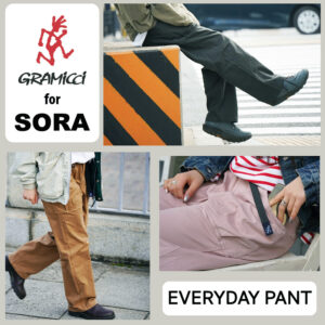 EVERYDAY PANT -Gramicci for SORA- Gramicci定番の滑らかで柔らかな肌触りの良いストレッチコットン生地を採用。 ポイントは両サイドのギアポケット。 太ももの前か […]